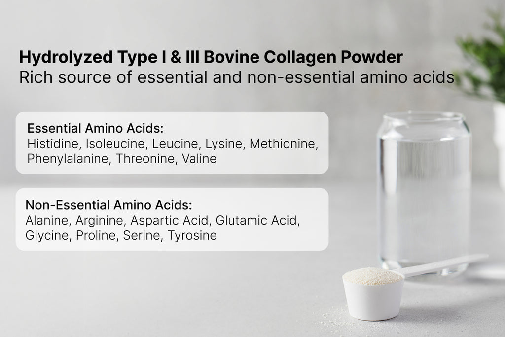 Hydrolyzed Type I & III Bovine Collagen Powder Rich source of 18 essential and non-essential amino acids